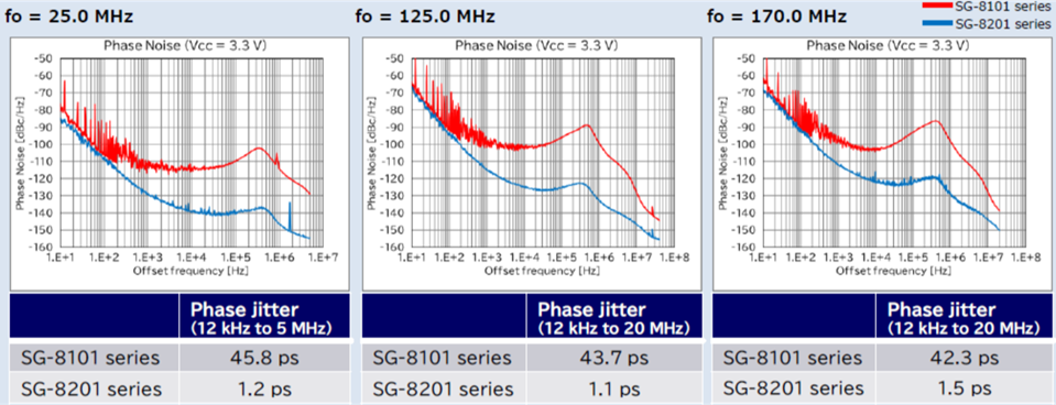 图6.信号抖动特性比较表(SG-8101 vs. SG-8201系列)